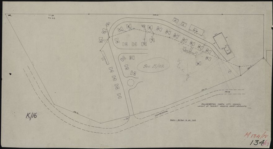 Layout of the Transit Camp in Hokowhitu, on what became the site of the Palmerston North Teachers College and later Massey University Hokowhitu campus.