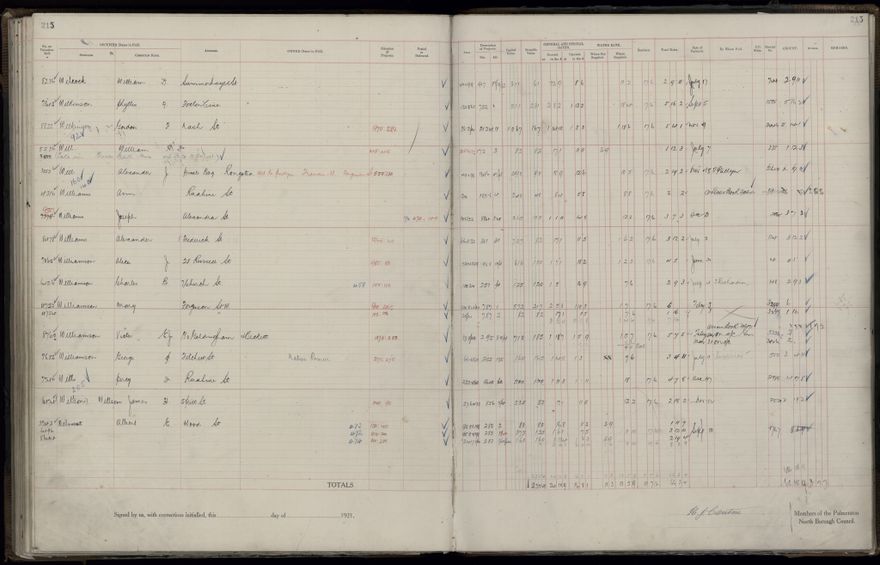 Palmerston North Borough Council rate book, listing rate payers for the years (1 April - 31 March) 1921 - 1922. Gives names, street, owner (if different to rate payer), legal description of property, capital and unimproved values and rates paid.
