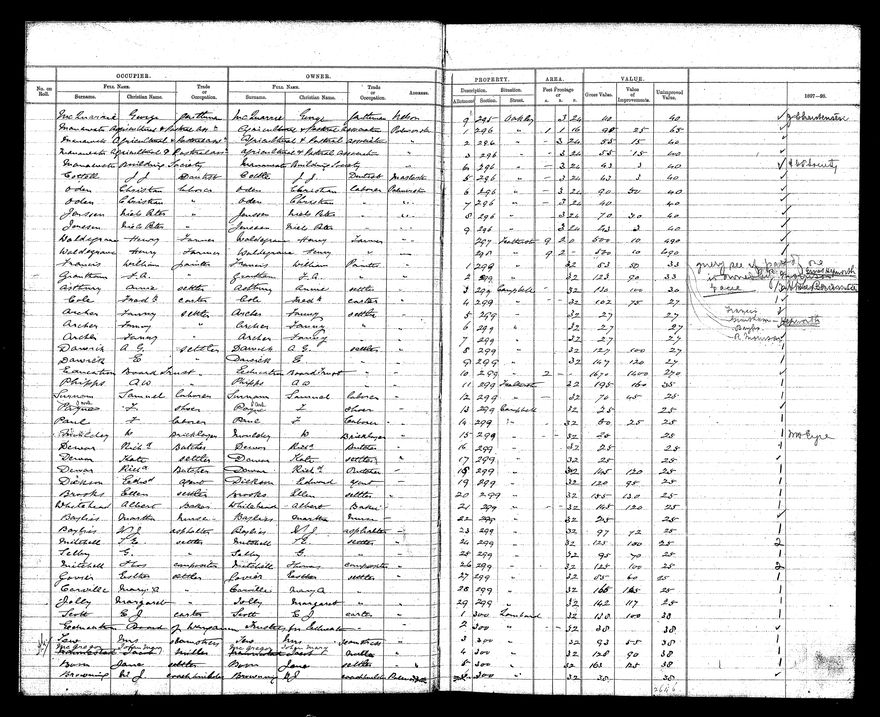 - The first valuation roll for the Palmerston North Borough Council (PNBC). This roll was prepared by the Council for the purposes of introducing rating on unimproved land value. The roll is presented in three parts – each is in numerical order by the legal description of the properties (section number). The three divisions of the roll appear to represent the three wards of the Borough. Many early sections were large and so may not directly correspond with modern property boundaries which have been subdivided. A modern section sharing some of the land will have the same section number and additional lot and DP numbers. Read notes found on the first page of section one of the roll regarding the actual status of the person listed as ‘owner’ or ‘occupier’. Part One includes the following section number ranges: 1-138, 201-344.