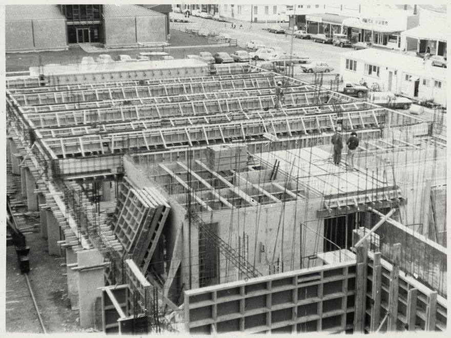 The building of the new Palmerston North City Council administration offices on The Square. In the background can be seen the Art Gallery on Main Street that is next to the Convention Centre.