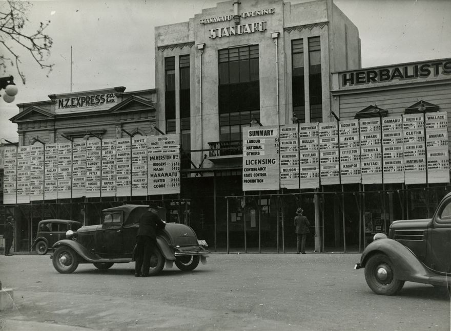 People would watch the election results for the whole of New Zealand as they were posted on a board at the Manawatu Evening Standard Office.