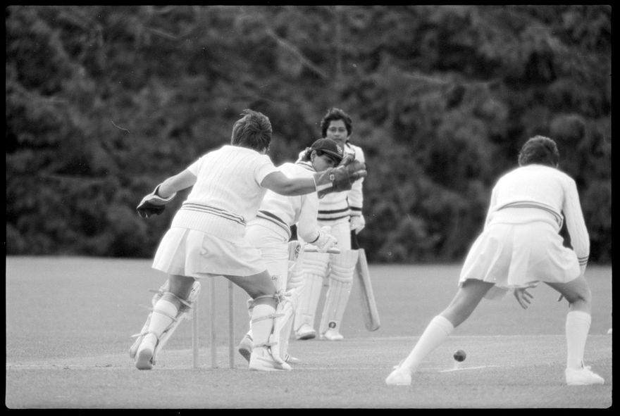 This image was taken (but not used) by the Evening Standard on 24 January 1982. It depicts the New Zealand Women’s Cricket team taking on the Indian Women’s Cricket team in a limited over (60) match for the Hansell's Vita Fresh Women's World Cup 1981/1982. The match was held at Fitzherbert Park. New Zealand won by 8 wickets.