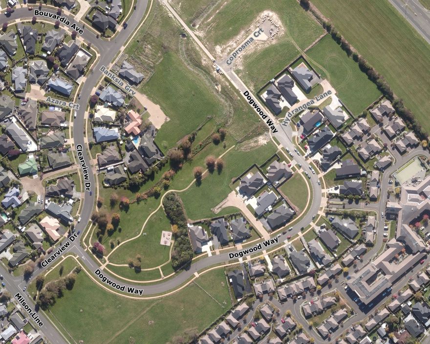 In Milson, a number of streets around the Clearview Reserve and off Clearview Drive are themed on plants found in New Zealand. This area was subdivided by Fair Investments Ltd. between 2002-2006, D.P. 91090.