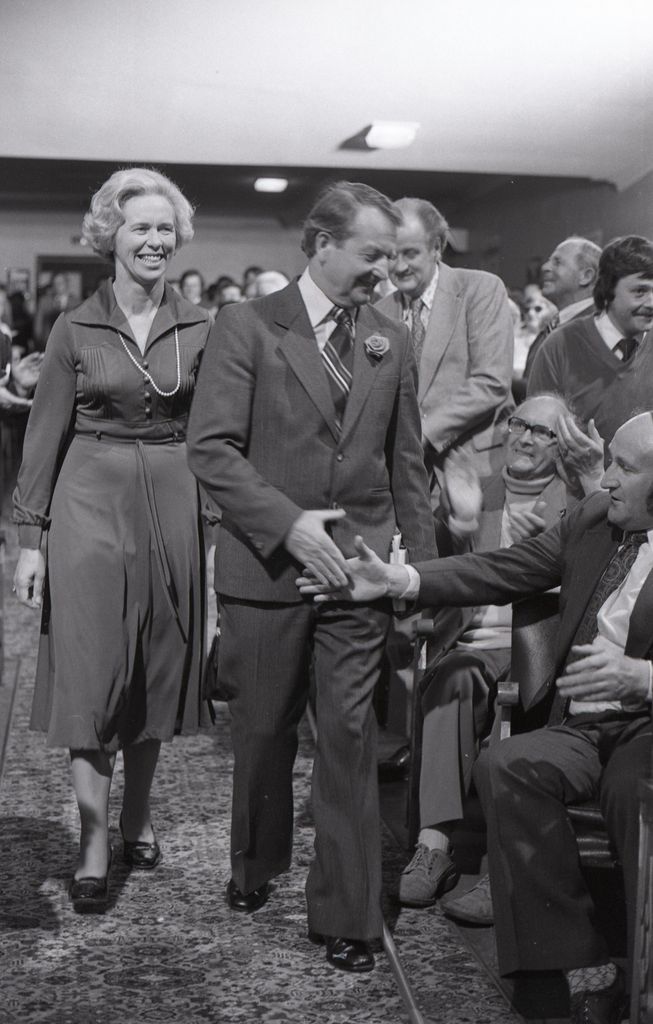 This image was taken (but not used) for a story that ran in The Manawatu Evening Standard on 1 November 1978 “Rowling in top form at opening” Labour leader Bill Rowling opened his general election campaign at Palmerston North’s Opera House with a rousing speech to over 1000 supporters on Tuesday 31 October. He was led through the Opera House aisle by two bagpipers, where he and his wife Glen shook hands with the crowd. The Standard reported that member of the public who could not secure a seat were taken to the Concert Chamber, where they watched the live broadcast of the event on television.
