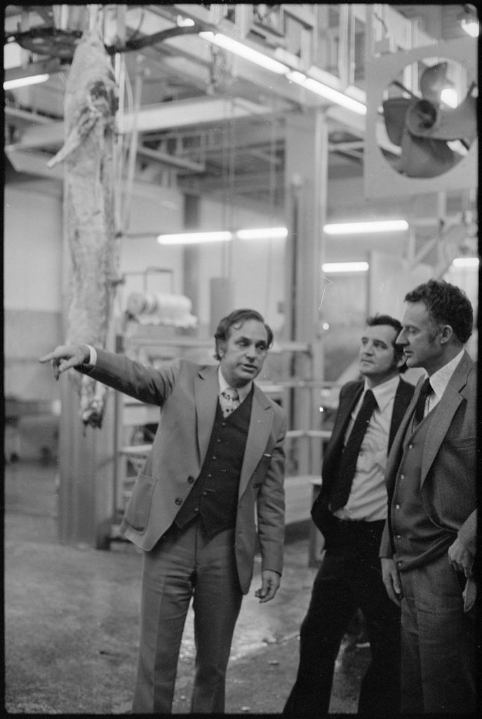 This image was taken by the Evening Standard on the 25th of May 1978 but was not published. It depicts Social Credit leader (and candidate for Rangitikei) Bruce Beetham visiting the Longburn Freezing Works on the campaign trail before the 1978 election.