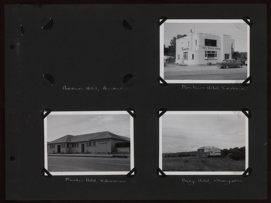 This album documents hotel buildings in the lower North Island (excluding the Wellington region), listing them alphabetically by the name of the business.