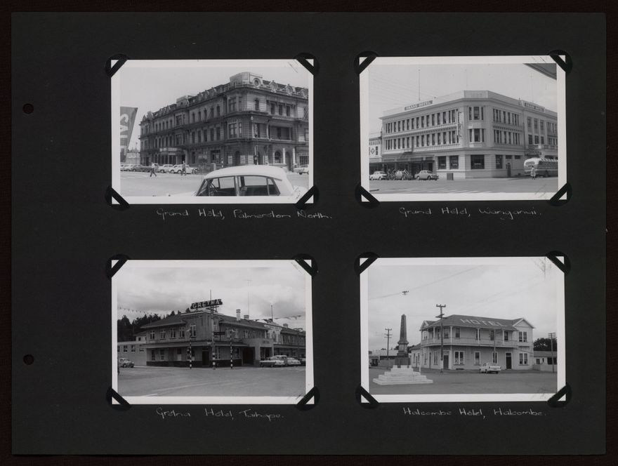 This album documents hotel buildings in the lower North Island (excluding the Wellington region), listing them alphabetically by the name of the business.