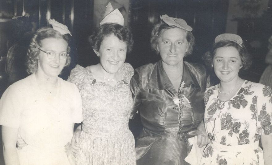 Photograph includes (in no particular order): Mrs Wootton, Supervisor of the 'Alterations' workroom, Jean McFarlane, Jackie Nelmes, Shirley (now) Carson. C M Ross Co. Ltd was one of the foremost department stores of Palmerston North and operated in The Square from 1883 until it was sold to Milne and Choyce in 1959.