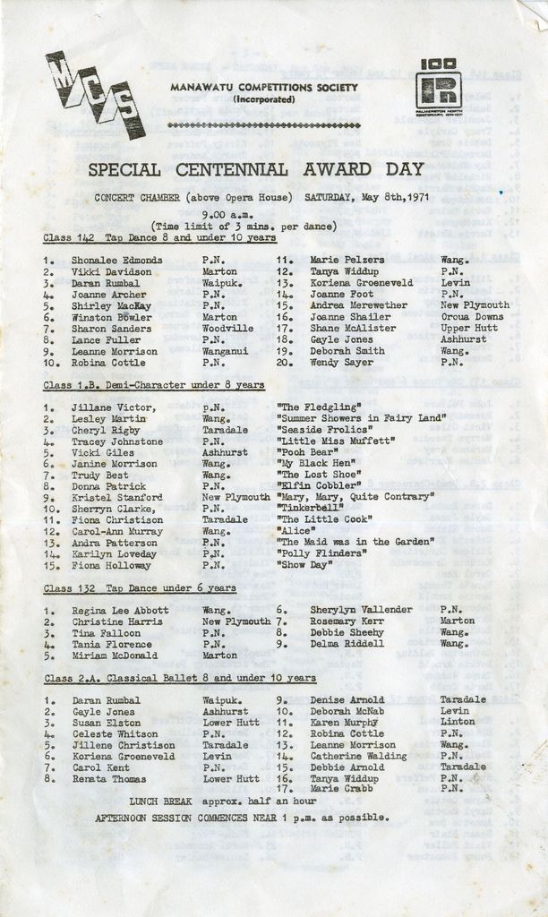 Manawatū Competitions Society, Special Centennial Award Day programme
