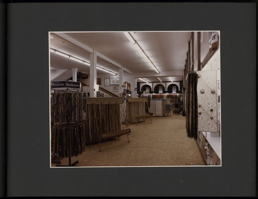 A photograph album from Alexander Clark LTD, a Palmerston North-based home and commercial decoration business. Images include shop displays, staff at work and at social events, and work projects.