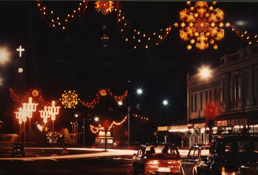 The Palmerston North City Council bought some of the decorative lights originally displayed in Regent Street, London, for display during Palmerston North's centennial.