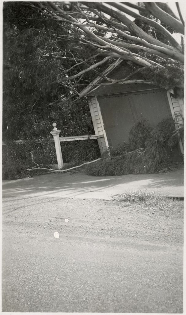 These pages look like are originally from an album. The pages show: Broadway Avenue, Cherry Blossoms in the Esplanade, Grandstand in the Showgrounds after the 1936 gale, "Wrecked Motor Shed" after the 1936 gale, The Square and The Lakelet.