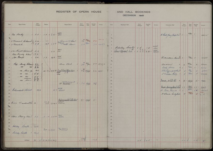 Municipal Opera House and Coronation Hall, Register of Bookings