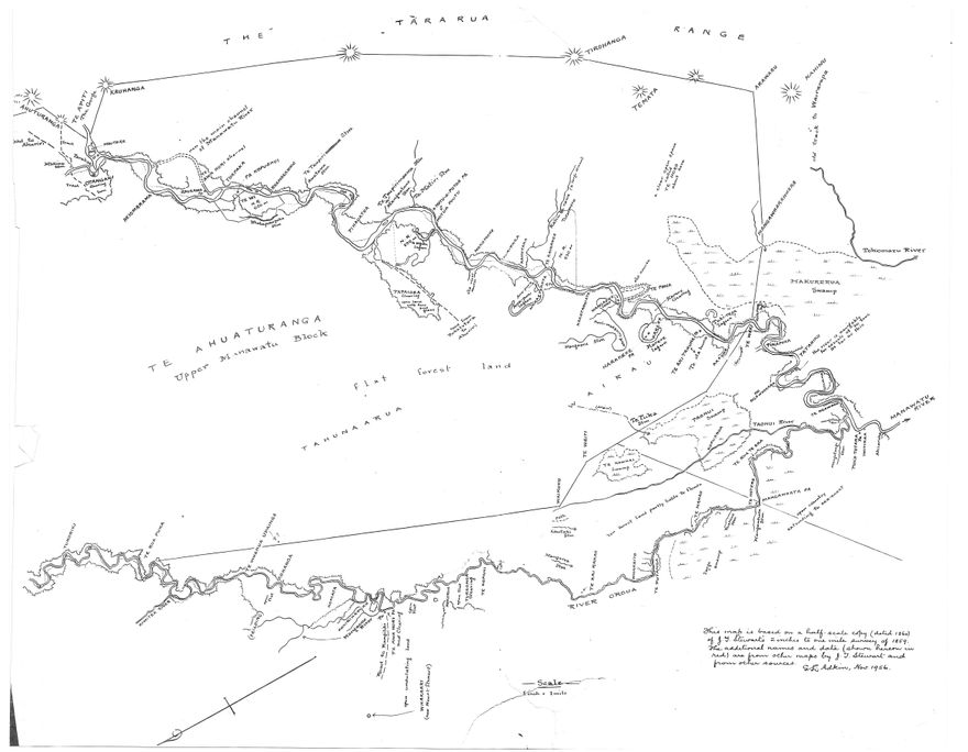 Scale: 1 inch to 1 mile. Annotated as follows: This map is based on a half-scale copy (dated 1860) of JT Stewart's 2 inches to 1 mile survey of 1859. By GL Adkin, Nov 1956.