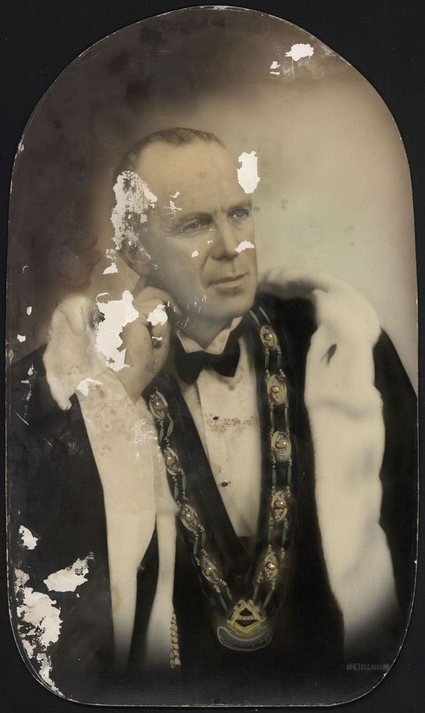 Gus Mansford in his mayoral robes. He was Palmerston North Mayor 1931 - 1947.