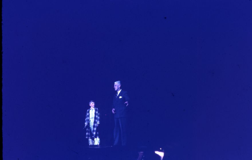 This image depicts the 110 performers and leaders sing for the audience at the Manawatu Scout Gang Show, 1963.