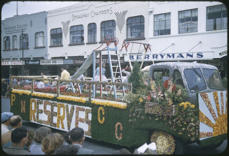 This image comes from a series of slides taken around Palmerston North in the late 1950s. Many show scenes in The Victoria Esplanade Gardens, but other areas and events around the city are also represented.