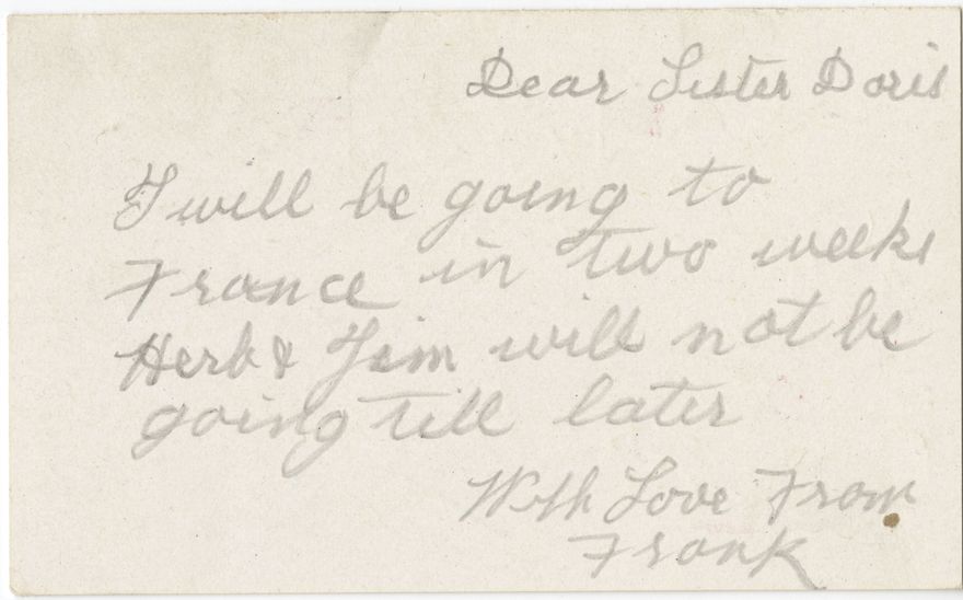 This postcard comes from the Mackrell Archive. They came to be in possession of the Mackrell family by way of Huia Mackrell's wife, Doris Cammock (later Mrs Mackrell, of Woodville). They were sent by Doris' brother Frank while he was serving in the European campaign during WW1. He was killed at Passchendaele in 1917.