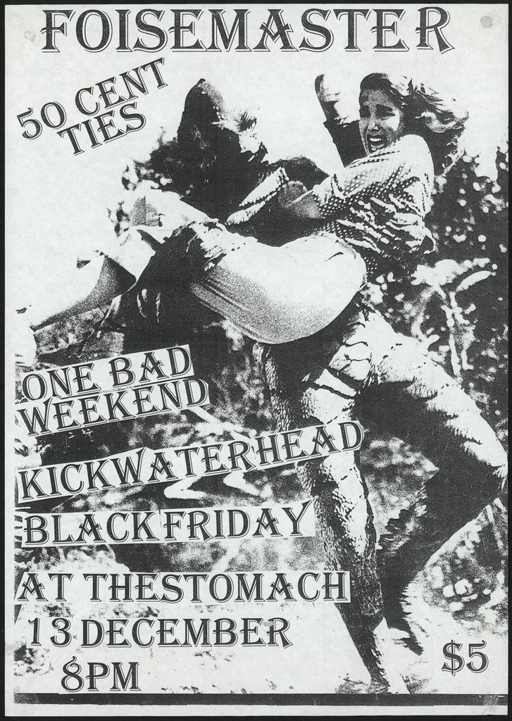Foisemaster. 50 cent ties. One bad weekend. Kickwaterhead. Black Friday at The Stomach. 13 December 8pm.