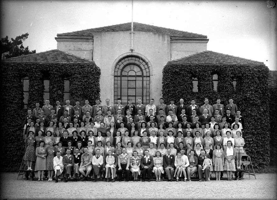 A group of unnamed Massey Agricultural College students outside of the Refectory Building.