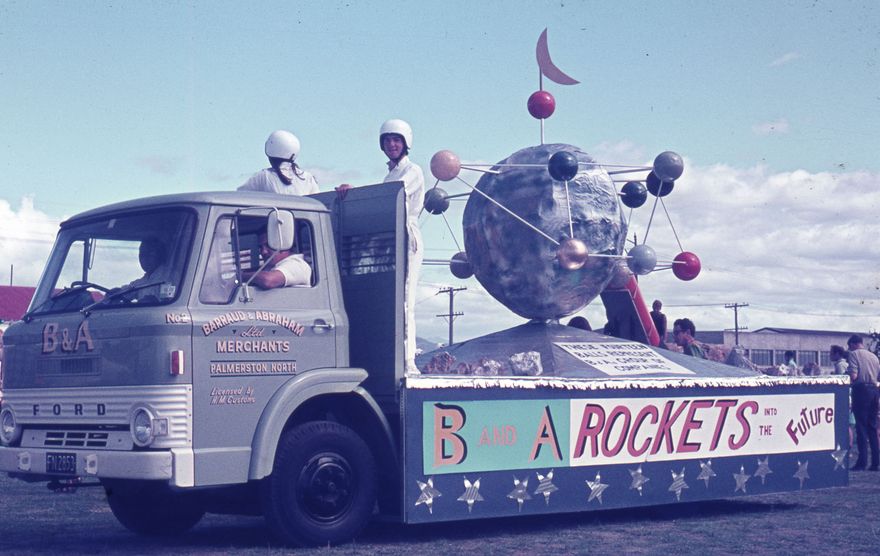 Ninety-two floats took part at the Palmerston North City Centennial celebrations of 1971. Approx. 10,000 people were present at the event to celebrate 100 years of Palmerston North. Keith Roland Hamblyn was a photographer with the Palmerston North Hospital Board for many years. In a private capacity, he documented a wide variety of public events between 1958 and the early 1970s.