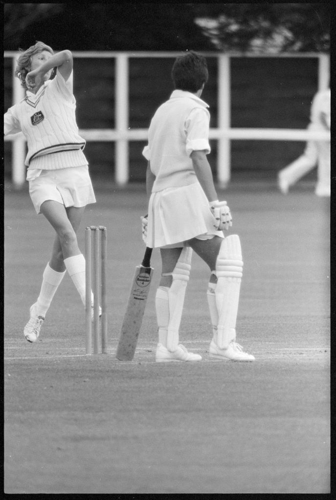 This image was taken (but not published) by the Evening Standard between the 29th and 31st of January 1983. It depicts a moment of action from the 3-day match between the New Zealand and Australian under 25s women’s cricket teams. Ultimately, the match was drawn.