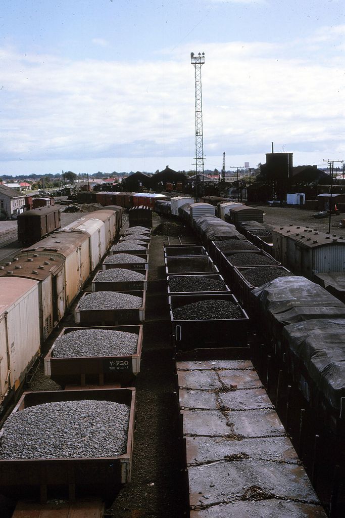 - Freight and coal wagons in the Palmerston North railway yards.