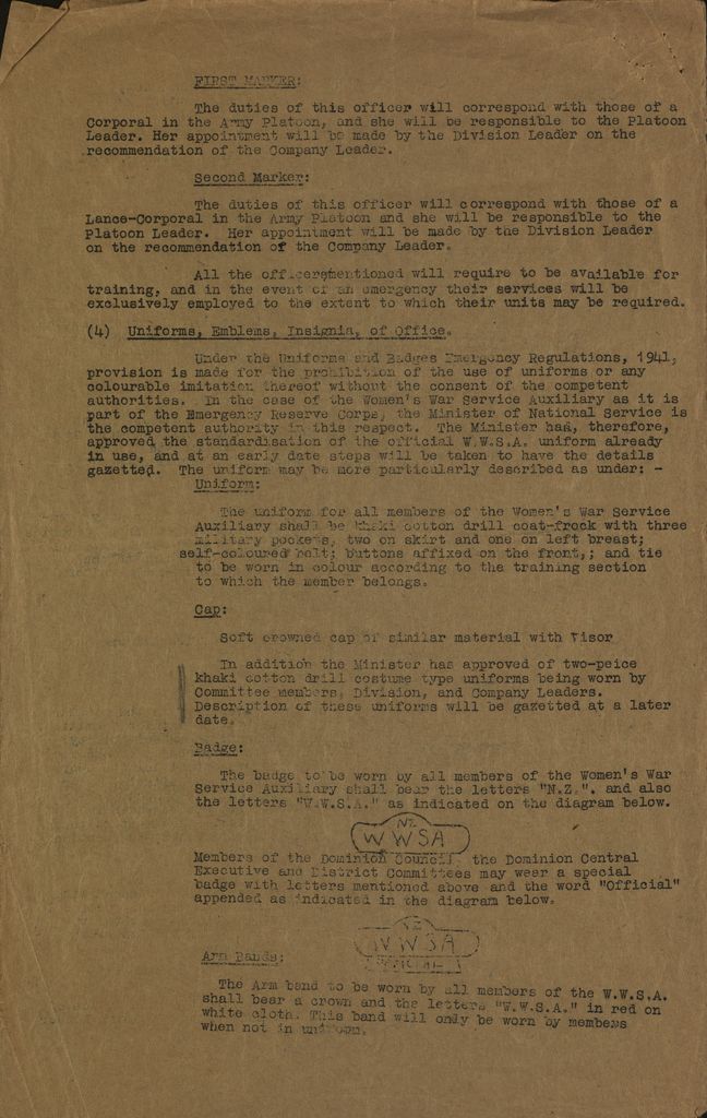 Memo regarding the establishment of training groups, uniforms, badges and insignia, etc. in respect of the Women’s War Service Auxiliary, dated 31 October 1941.