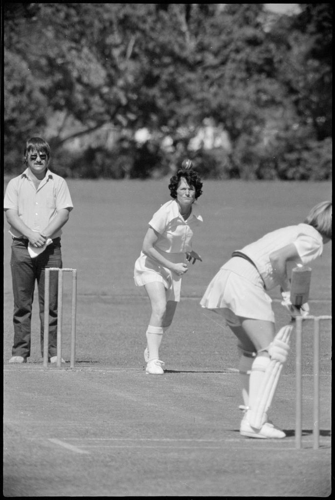 This image was taken (but not published) by the Evening Standard between the 30th and 31st of December 1980. It depicts a moment of action from the Hallyburton Johnstone Shield 2-day match between the Canterbury and Wellington women’s cricket teams. The match was drawn.