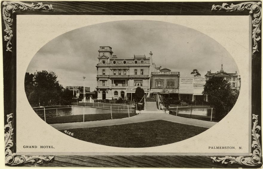 The Grand Hotel was built in 1906 on the site of the former Provincial Hotel. The lakelet was completed in 1909. The top floors of the Grand Hotel building now operate as commercial offices.