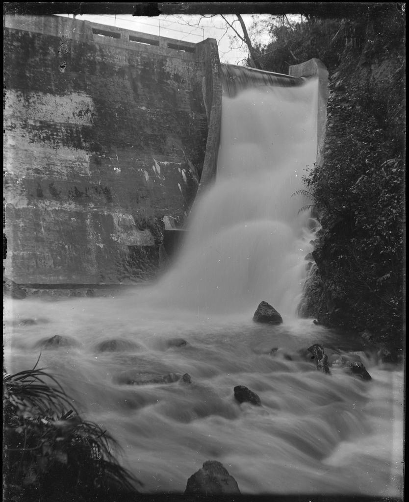 The Lower Turitea Dam was originally completed in 1907 but was raised to 50 feet in 1912. It was officially opened February 17 1913. This enlarged dam remained in use until 1957.