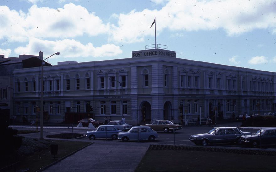 This building was Palmerston North’s fourth Post Office, operating from 1906-1988. The original 1906 building was extended towards Broadway and up Main Street in the early 1920s and in 1937. It was originally built with a clock tower but this was removed in 1942 after an earthquake for safety reasons and the clock and chimes were re-housed in the ‘new’ clock tower in The Square in 1957.