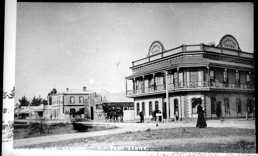 The sheds beyond the hotel were Hanlon's Livery Stables. Hanlon's also had stables opposite the hotel on Mulgrave Street. The two storey boarding house was where Mrs Hyndman lived for many years. She was a daughter of the pioneer Maunder family.