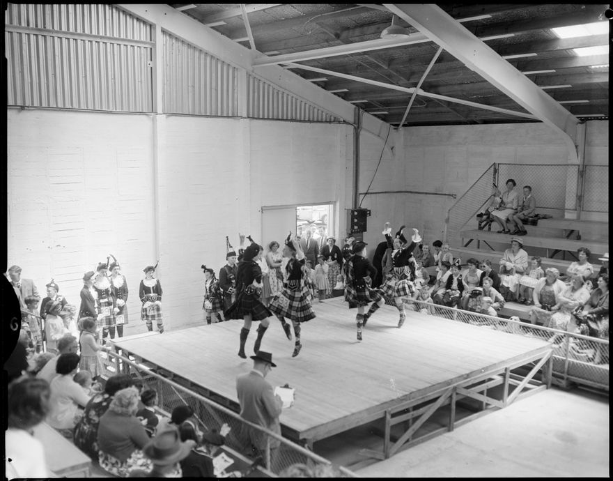 This image was taken for a story that ran in The Manawatu Evening Standard on 07 November 1960 "National dancing events were held at the Manawatu and West Coast A. and P. Association's 68th annual show on Saturday in the new pavilion giving competitors and spectators the benefit of shelter from the sun."