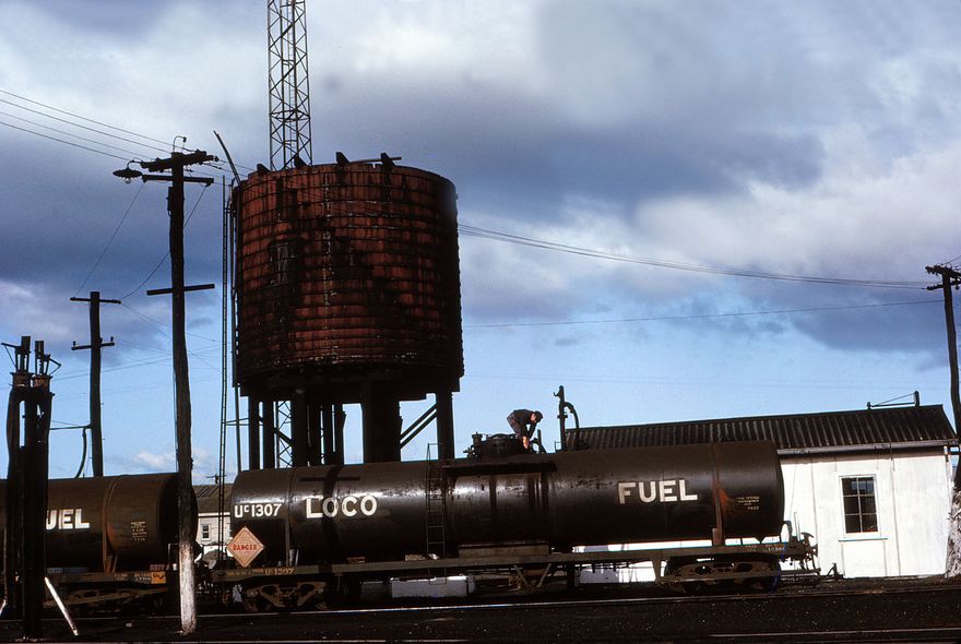 A worker on UC class tanker number 1307 in the Palmerston North railway yards.