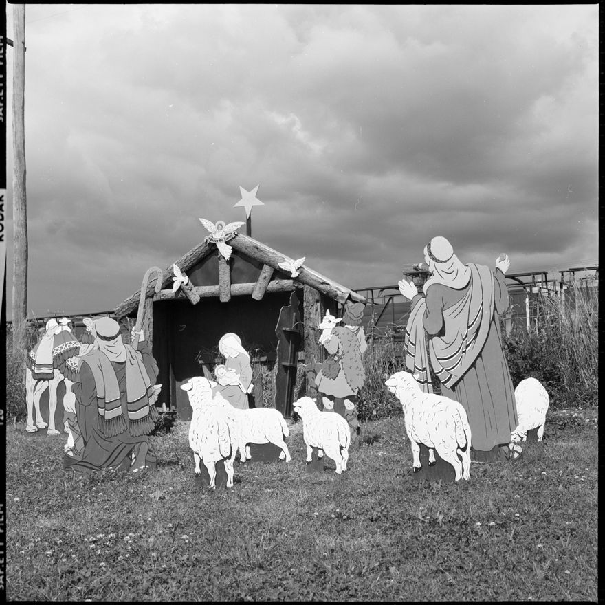This image was taken (but not used) for a story that ran in The Manawatu Evening Standard on 24th December 1965 "Seasons Greetings." [A life sized nativity scene in Levin.]