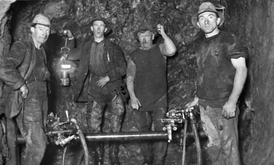 Workers in Arapeti Dam, No 2 Tunnel, Mangahao Electric Power Scheme