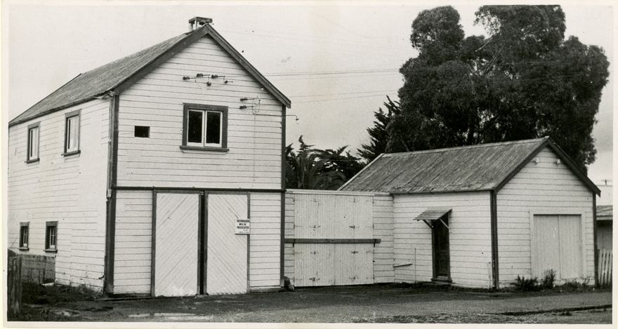 This shows Woodville's second fire station, in lower Ormond Street, opposite Foutaine Square. Around 1885 a committee was set up to look into the possibility of forming a Volunteer Brigade, and 32 members were enrolled as a firefighting unit with contributions of money from residents totally £75/8/0. A Fire Engine was bought from Dunedin South Brigade and later sold to Feilding for £80/0/0. The Brigade in Woodville was captained by W. Nicholson with W. Bickerston as Leiutenant. As with Palmerston North, Woodville was short of money and lacked a good water supply. The first fire station cost £21/0/0 and was built on Ormond Street wand was later turned into a Plunket Room and Dental Clinic (until 1949). The Brigade was re-formed in 1888 and again after 1892.