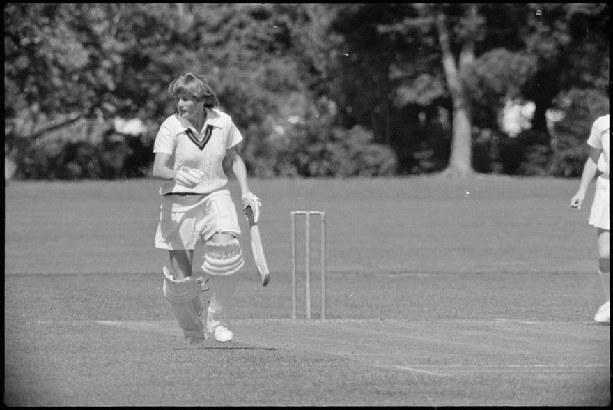 This image was taken (but not published) by the Evening Standard between the 30th and 31st of December 1980. It depicts a moment of action from the Hallyburton Johnstone Shield 2-day match between the Canterbury and Wellington women’s cricket teams. The match was drawn.