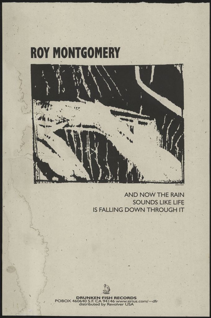 Roy Montgomery. And now the rain sounds like life is falling through it. Drunken Fish Records.