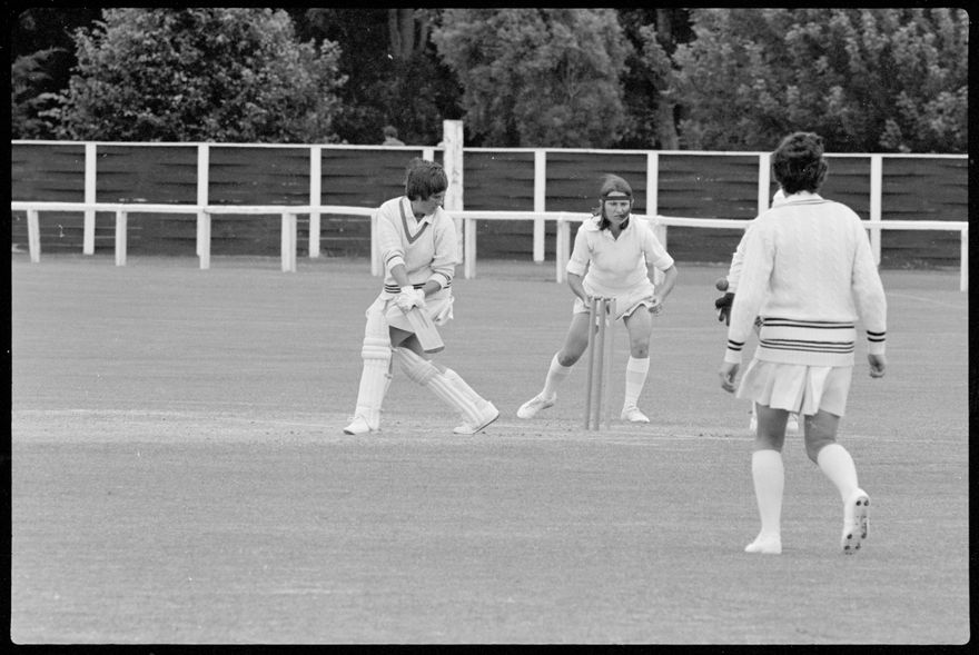 This image was taken (but not published) by the Evening Standard between the 6th and 7th of January 1981. It depicts a moment of action from the Hallyburton Johnstone Shield 2-day match between the Wellington and Auckland women’s cricket teams. Wellington won by 10 wickets.