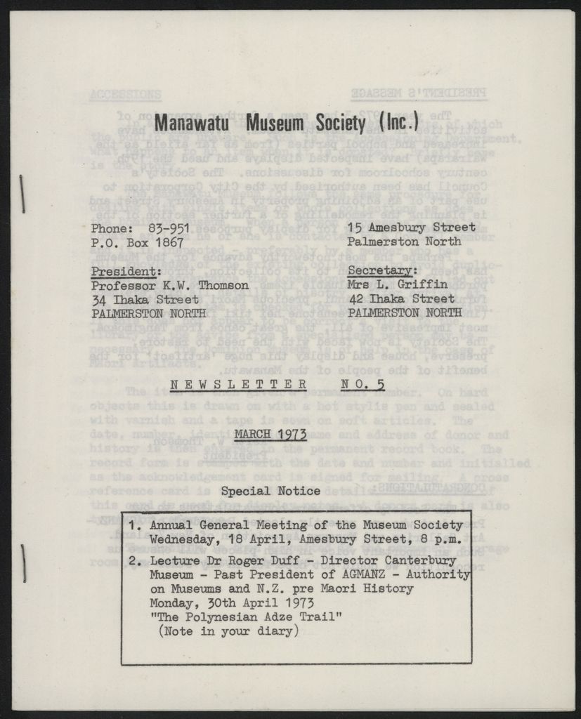 Manawatu Museum Society (Inc.) Newsletter No. 5