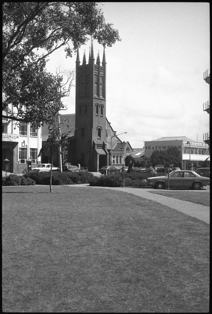 Anglican services began in Palmerston North in 1872. This All Saints Church, built 1914, was designed by Frederick de Jersey Clere in Edwardian Free Gothic style and constructed in brick. It was the third such Anglican church on the same site. It is listed in category 2 of the New Zealand Historic Places Trust because of its historical, architectural and community significance.