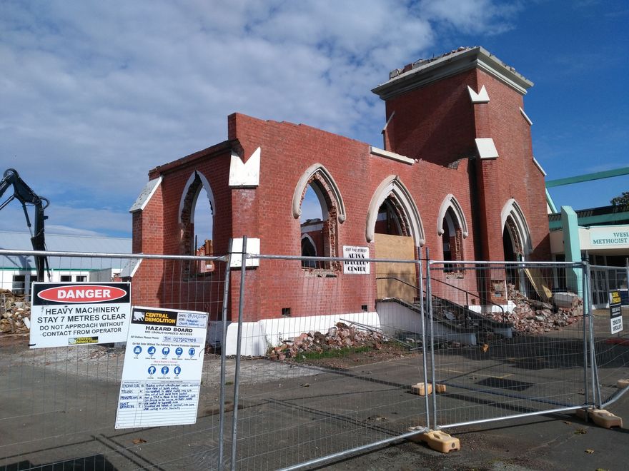 The Wesley Broadway Church was originally called St Paul's. It was designed by James Bennie in 1911 and was the third Methodist church on this site. In 1989 the two Methodist churches in Palmeston North (the other in Cuba Street) combined to become the Wesley Broadway Church. The church was demolished in 2020 as it did not meet the new earthquake standards. Photo taken on a Huawei GR5 mobile device.