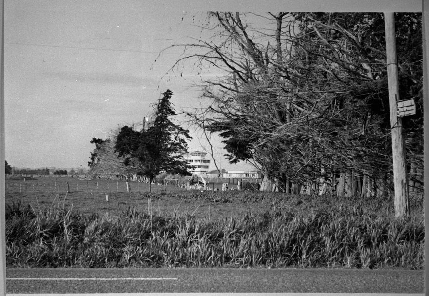 Milson Airport stands on the outskirts of Palmerston North. It was established in 1936. Through the trees can be seen the control tower. Printed in 'The Guardian' 24 September 1975.
