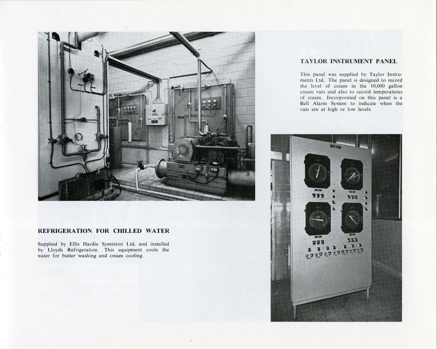 The Manawatū Co-operative Dairy Company Ltd was established in 1960 following the merger of the Awahuri and Rongotea Co-Operative Dairy Companies. To cope with the enlarged intake of milk and cream a continuous butter making system was planned and a new butter factory was opened in 1968. At the time, it was the third largest dairy co-operative in New Zealand, having an ultimate capacity of 20,000 tons of butter a year, a whole milk capacity of 3000, 000 gallons of milk daily and production value of $11,000,000 annually. This booklet lists the Board of Directors, provides and history of the company, details the new continuous butter making system, and gives an overview of the facility.