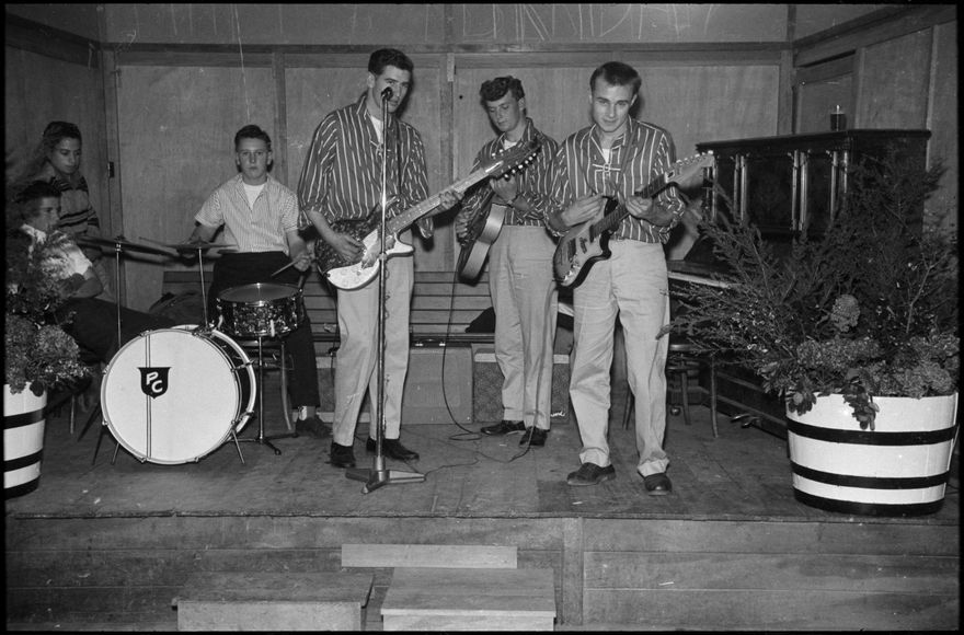 Image depicts the band who played a social at Jacquard Hosiery Mills.