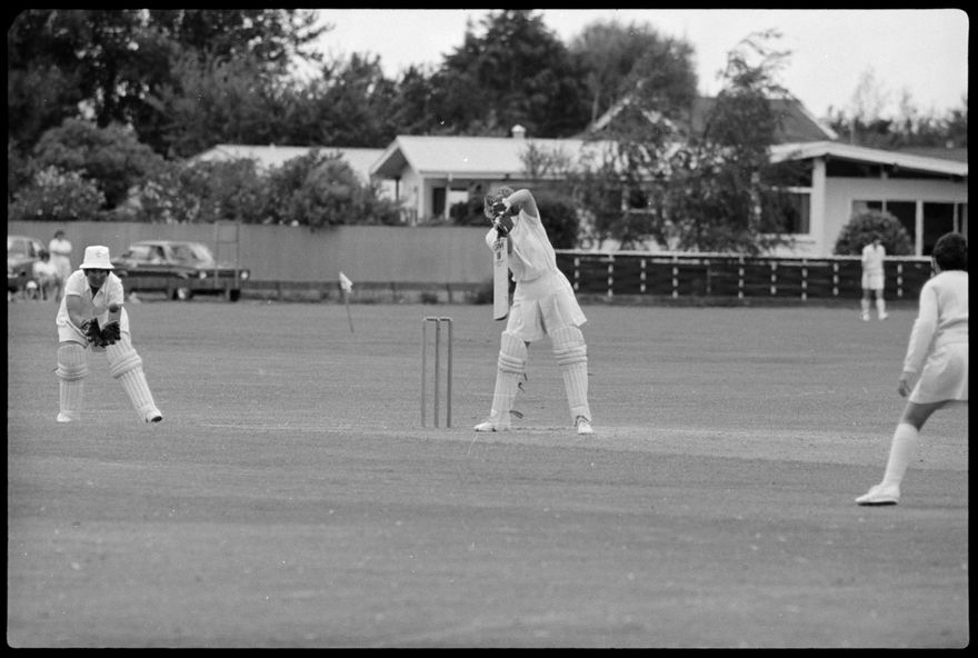 This image was taken (but not published) by the Evening Standard on either the 30th or 31st of December 1980. It depicts a moment of action from the Hallyburton Johnstone Shield 2-day match between the Auckland and Central Districts women’s cricket teams. The match was drawn.