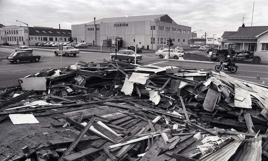 This image was taken for a story that ran in The Manawatu Evening Standard on 12 May 1970. The caption was illegible. The demolished building was the Little Dutch Dairy located on the the corners of Fitzherbert and Ferguson Street.