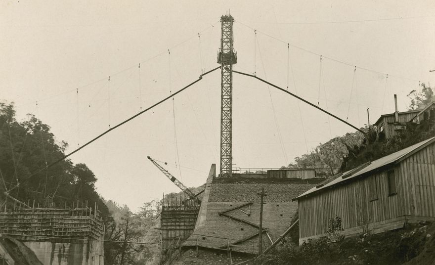 This photograph is part of a collection relating to the Mangahao Electric Power Scheme and its construction. After being delayed by WWI, construction began in late 1919 and the station opened in November 1924. The Scheme, which provides hydroelectric power, is situated near the town of Shannon. It serves Wellington, Horowhenua, Taranaki, Hawkes Bay, and the Wairarapa.